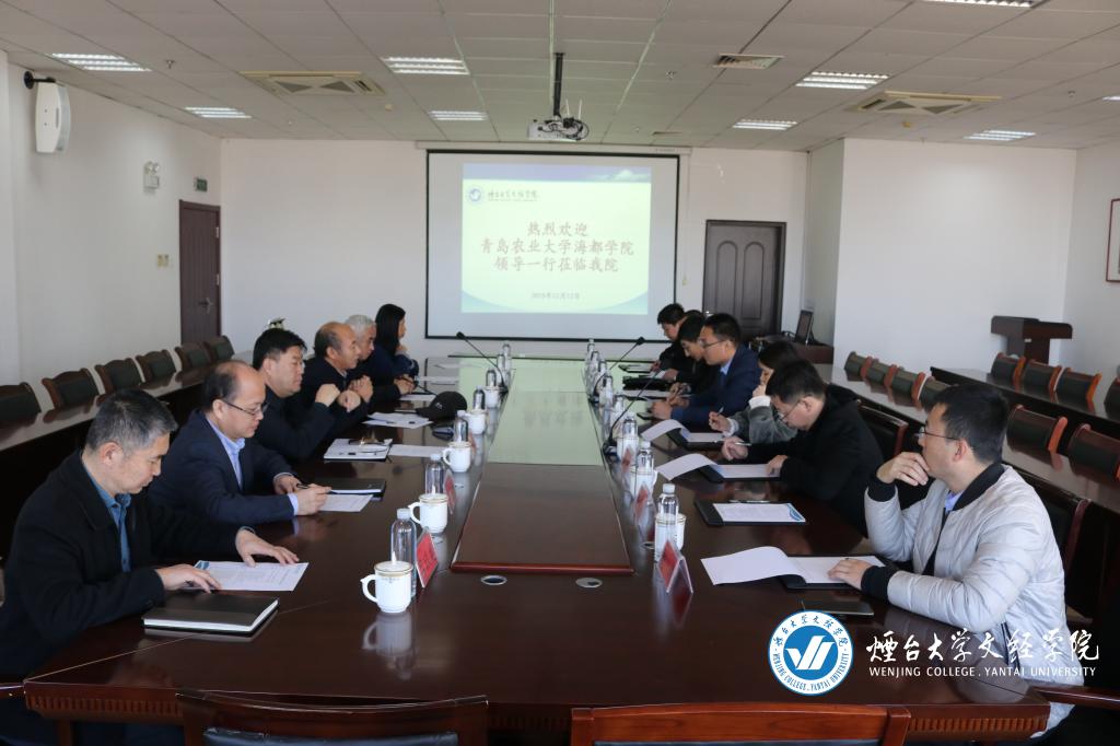 12月12日,启地教育集团副总裁仇慧、海都集团副总裁纪智远,青岛农业大学海都学院副院长张广伟、杨洲等一行七人来我院交流考察。我院党委书记唐家弘,副院长王来武、辛连军,院长助理莫红菊以及院办、财务部、后勤部等相关职能部门负责人在六楼会议室接待来宾并举行会谈。