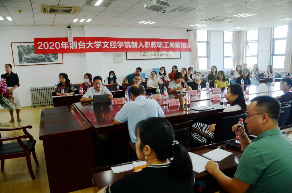 为进一步加强我院青年教职工队伍建设,帮助新入职教职工树立良好职业道德和敬业精神,及时适应并胜任学院教学和管理工作。8月22日,烟台大学文经学院2020年新入职教职工岗前培训启动仪式在二教六楼会议室隆重举行。院长于光辉、党委书记唐家弘、副院长王宪杰、院长助理莫红菊出席,相关职能部门负责人及全体新入职教职工与会。启动仪式由人事部部长于静主持。
