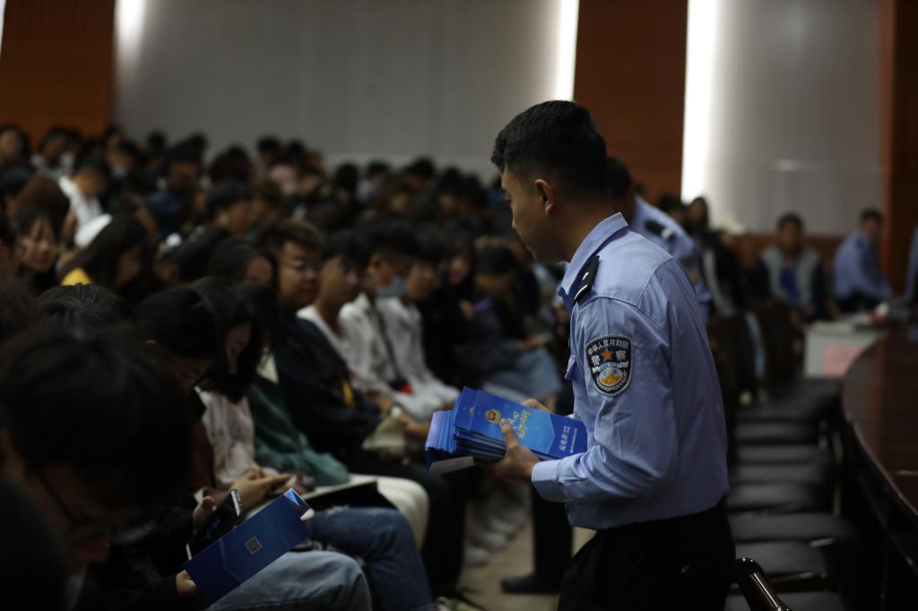为减少电信诈骗的发生,提高大学生应对电信诈骗能力,10月10日上午,由学工部和武装保卫部共同举办的反网络诈骗宣讲在一教多功能厅进行。烟台市公安局莱山分局平安莱山宣讲团代表吴泓霖担任主讲,2020级新生与会聆听。