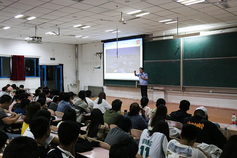 田警官从防范网络诈骗、规避网络安全信息、做一名合格的网民三个方面展开讲解,他引用习近平总书记“没有网络安全就没有国家安全”的网络安全观念强调网络安全的重要性,并列举棱镜门事件、“永恒之蓝”勒索病毒攻击事件、伊朗震网病毒事件、委内瑞拉全国大停电事件等国内外真实网络安全案例,指出网络安全的重要性,以此告诫同学们树立网络安全观念,提高防范意识。他讲到,目前人们的网络安全意识还有待提高,网络信息泄露案例层出不穷。网络诈骗团体会针对人性弱点制定专门的诈骗计划,学生应当具备基本的法律安全意识,以法律的武器保护自己,防范网络诈骗。就如何规避网络安全信息,他结合徐玉玉助学贷款被诈骗事件等一系列安全信息泄露的案例,对同学们提出五点要求:一、注意保护自己的个人信息;二、网络上不可轻信他人;三、不转发未经证实的信息;四、远离法律禁区;五、培养高尚的道德情操。