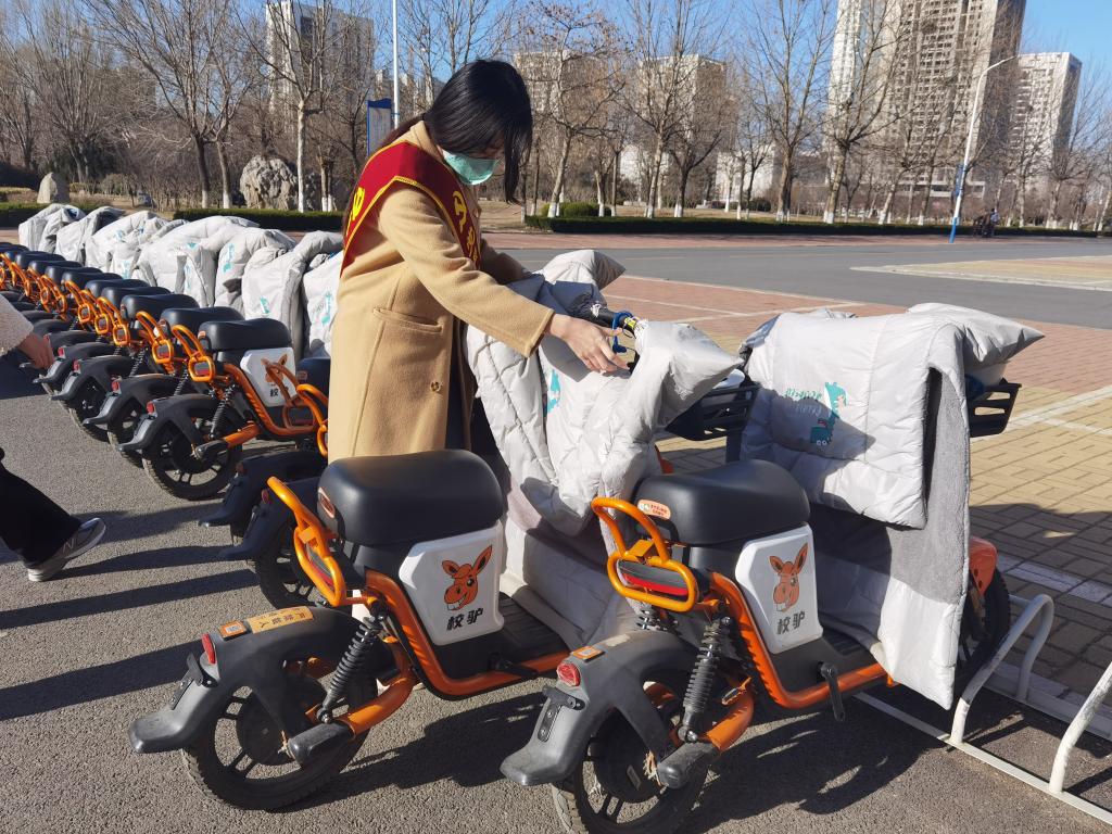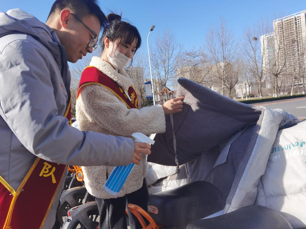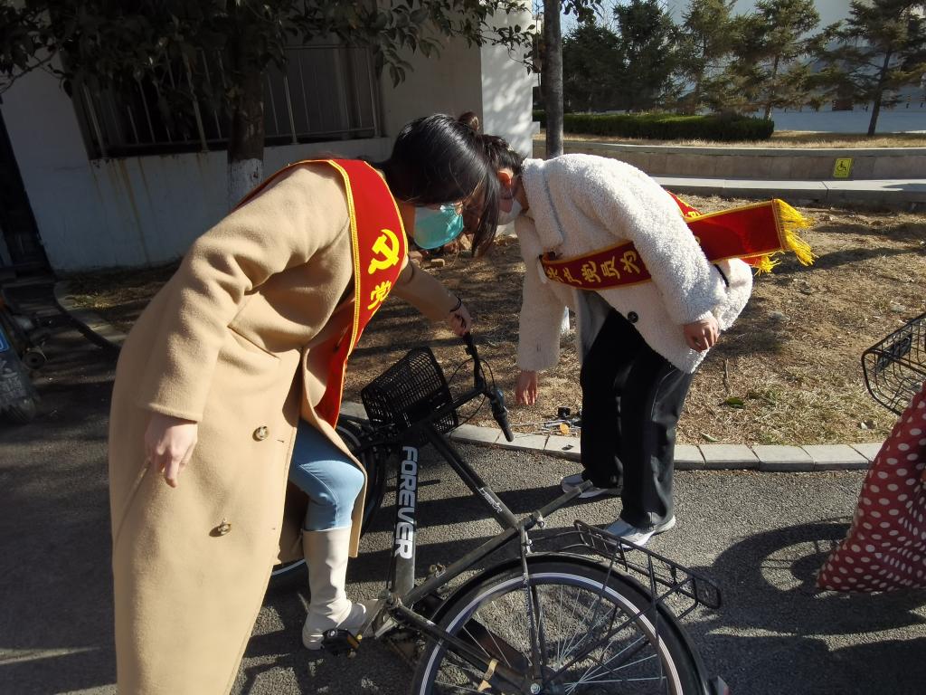 活动开始,学生党员分成两组,分配好任务后,一组去二教门前摆放自行车,一组去七号楼前整理电动车。大家拿着抹布、酒精喷雾等对车辆进行仔细擦拭。虽然天气降温,凉风阵阵,但是丝毫没有影响到同学们的热情,经过大家不懈的努力,二教和七号楼前的电动车停放区焕然一新。最后,全体参与活动的成员在综合楼门前拍照留念。